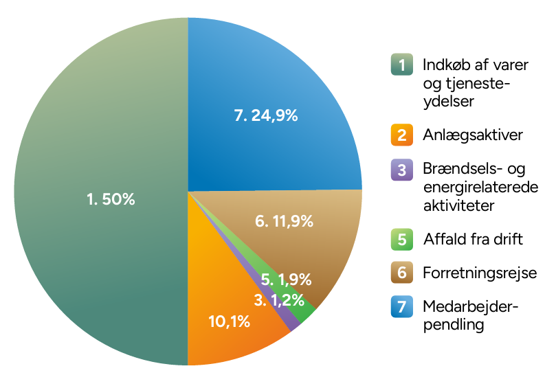 Det er tydeligt, at den største del af vores udledning ligger i indkøbte varer og tjenesteydelser. Derfor har vi særligt fokus her. Vi er allerede i gang med at bruge mere præcise data fra vores trælastindkøb og arbejder på at opdele indkøbene i underkategorier. Det gør det muligt at se, hvor udledningen reelt opstår, og hvor vi kan sætte ind.