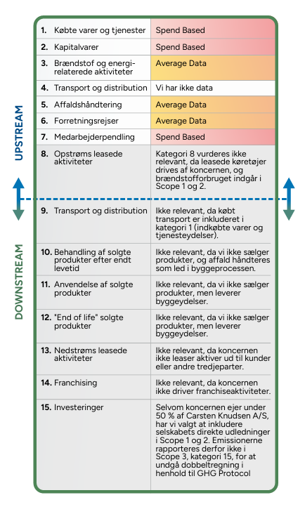 Vi har derefter gennemgået alle Scope 3-kategorier og vurderet, hvad der reelt er relevant for vores forretning. For de væsentlige kategorier har vi valgt beregningsmetode ud fra de data, vi har til rådighed. Hvor vi kan, bruger vi leverandørspecifikke data. Hvor det ikke er muligt, arbejder vi med hybride eller mængdebaserede metoder frem for rene spend based beregninger.